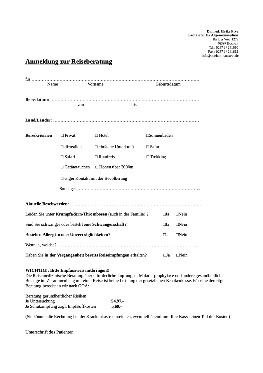 Nachfolgend eine Auswahl von Dokumenten, welche Sie Zuhause ausfüllen bzw ausdrucken können.